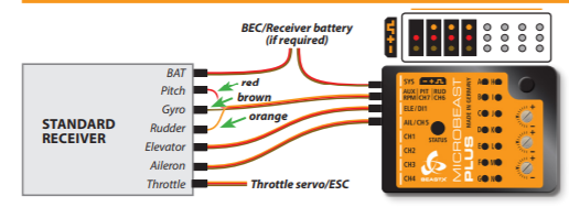 After setting this up, go ahead and plug your tail servo lead into the CH4 slot on the BeastX