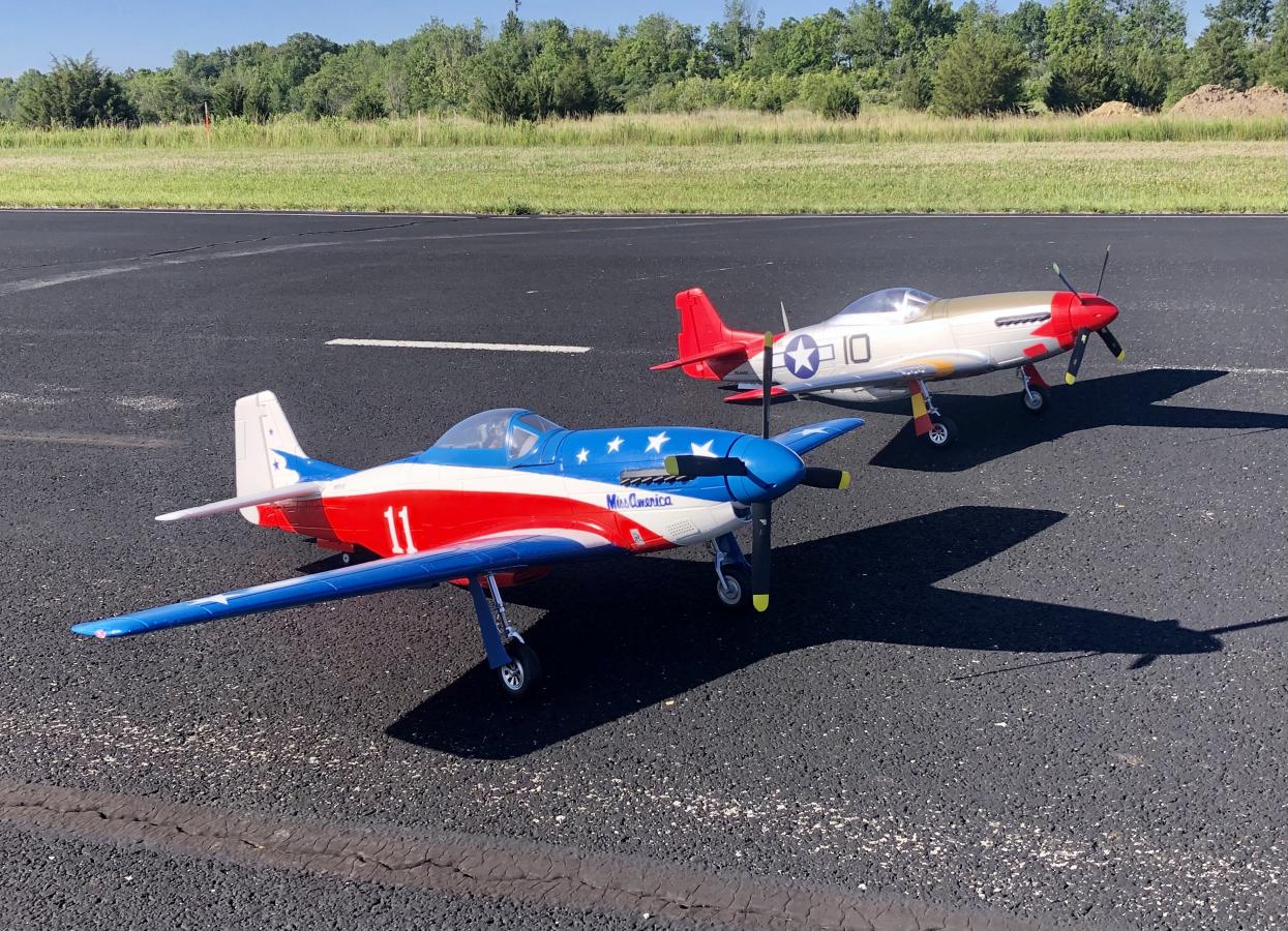 • Purchased this FMS P-51 at the Dayton Modelrama at a bargain price back in April. It was a little beat up, so decided on a repaint. Parked next to a flying buddy’s stocker. Thanks Callie!