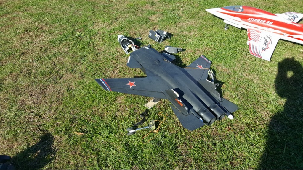 But at the end of the day there was one casualty.... after picking up the pieces there wasn't a single blade left on the fans I have never seen anything like it before. At the end of the runway at lift off it just went crazy. Flew fine the last time it was up and the only thing I did to it was fix the canards so they could not move. Ah well... if you are gonna fly 'em you are gonna crash 'em. She was a perty ship...