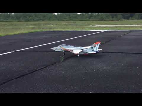 • Here is flight #4 on my Tomcat. A very sweet flying bird all in all. I'm still trying to get my landings dialed in. Flight #3 I did a no flap approach which ended up in a go around due to a big bounce and too much speed. second approach with full flaps (full span too) much more solid on the approach. I have JS electric brakes on her now and I'm having problems getting symmetrical braking. On flight #4 as you can see I got a bit of a PIO going on the landing roll out followed by the hard asymmetrical brake application. Not too smooth... but a reusable airframe. Oh well great fun! ..lots of adrenalin