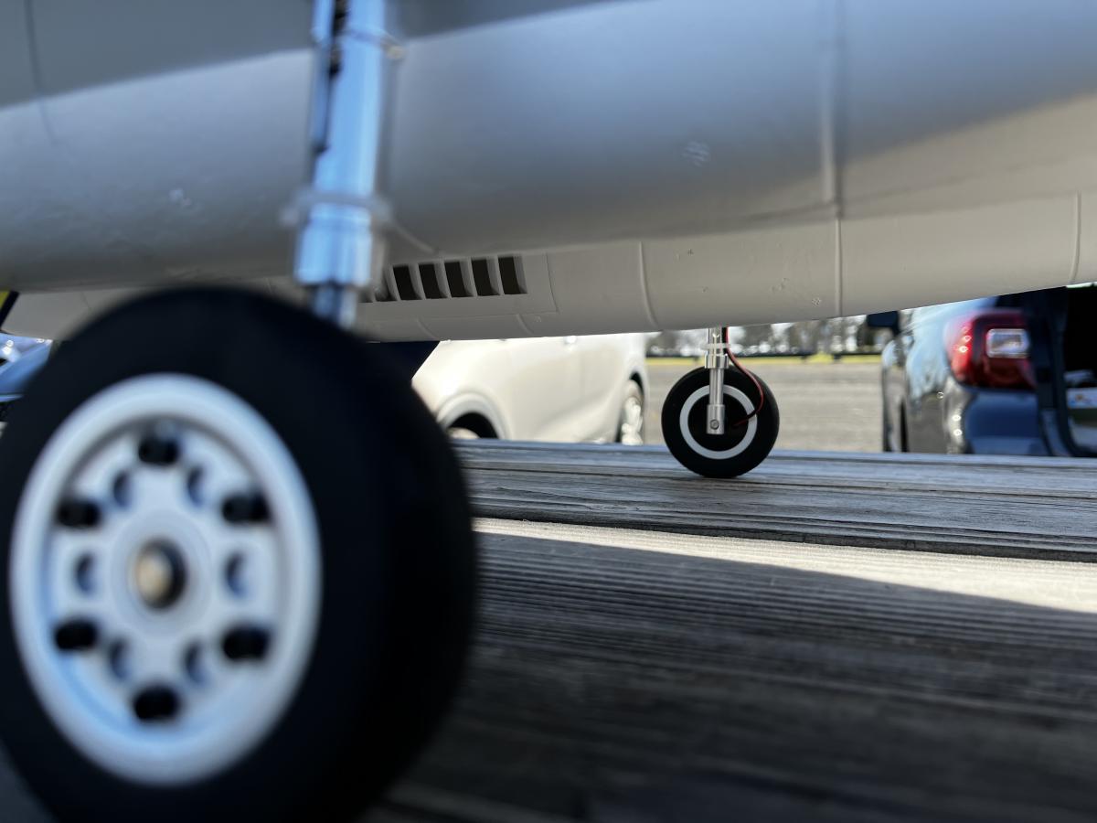 I’ve finished the non-cosmetic portions of this build. I’ve done the wing box modification, as well as the battery tray and nose gear reinforcement plate from Thingiverse. The two upgrades I placed the most thought in were the power system and how to get this jet to stop, so I went two routes on that: adding thrust reverse and magnetic brakes. I’m really underwhelmed by the effectiveness of the thrust reverse, but it’s a means of adding some resistance with no weight penalty, so I could see why some might opt only for that. The magnetic brake setup is really effective for the small weight penalty. Given these wheels are only a few ounces heavier than the stock wheels and very near the CG, I wouldn’t go any other way. Here’s a video to show what can be done; it’s easy to see that spooling up the throttle with the brakes on is a great way to use as little runway as possible. And to see that I’m able to accelerate to roughly 30-35ish MPH and stop in such a short distance is really encouraging. These are the 65mm magnetic braking wheels from JB Hobbies, I got them from Efflux RC.
