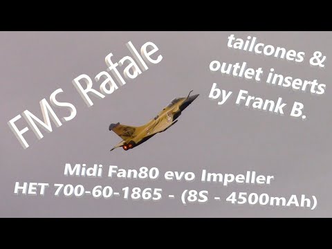 I'm using a 6000mah, 6s, HV LiPo weighing 665g - weight is the more important factor than mah as balancing must be considered. Weight differs from one brand to another, even if mah stay the same. It flies the plane with a little more gusto and a little more flight time. I also have the 3-D printed nozzles from Geek. Rafale flies marvelously with this combo.