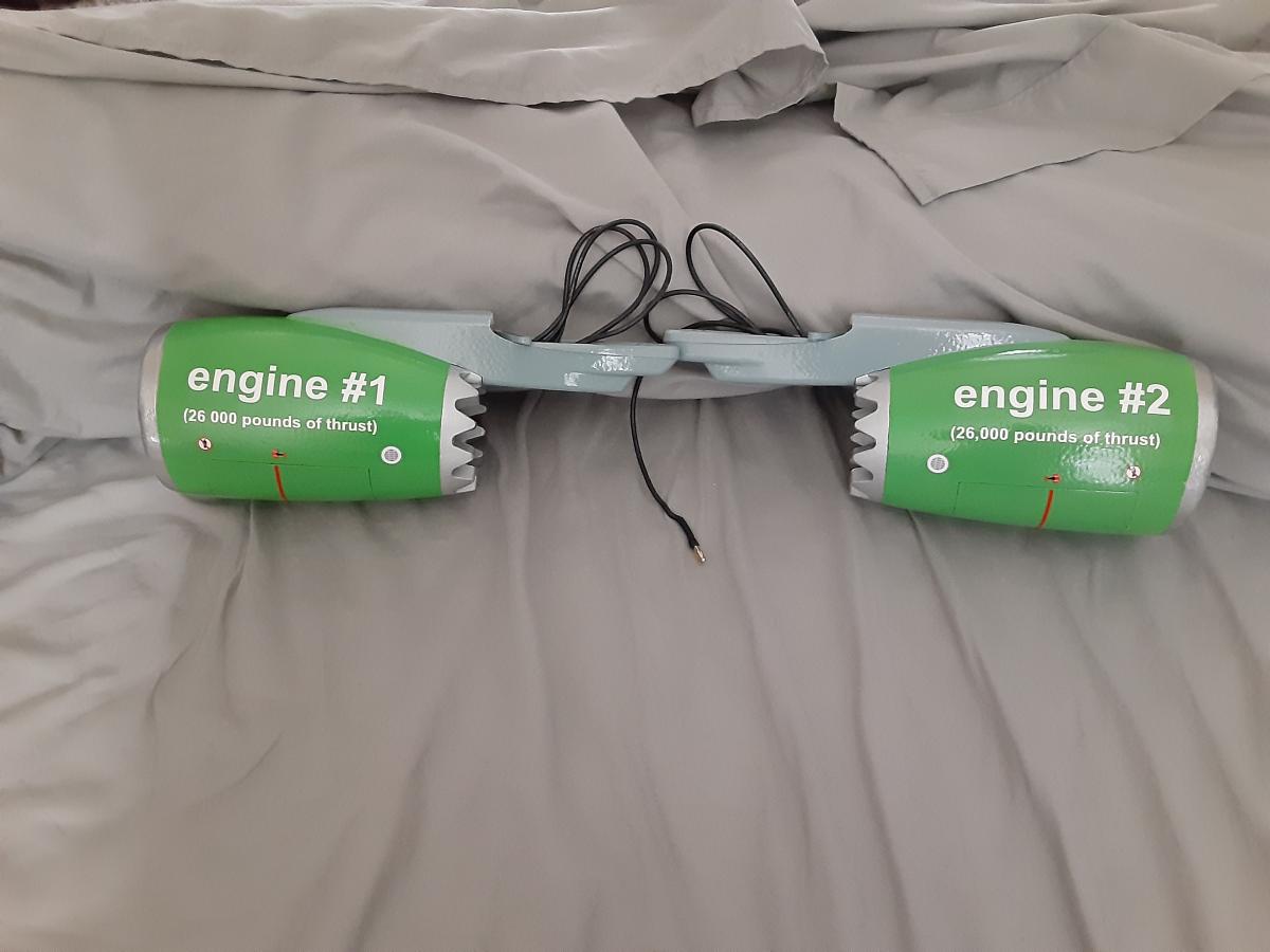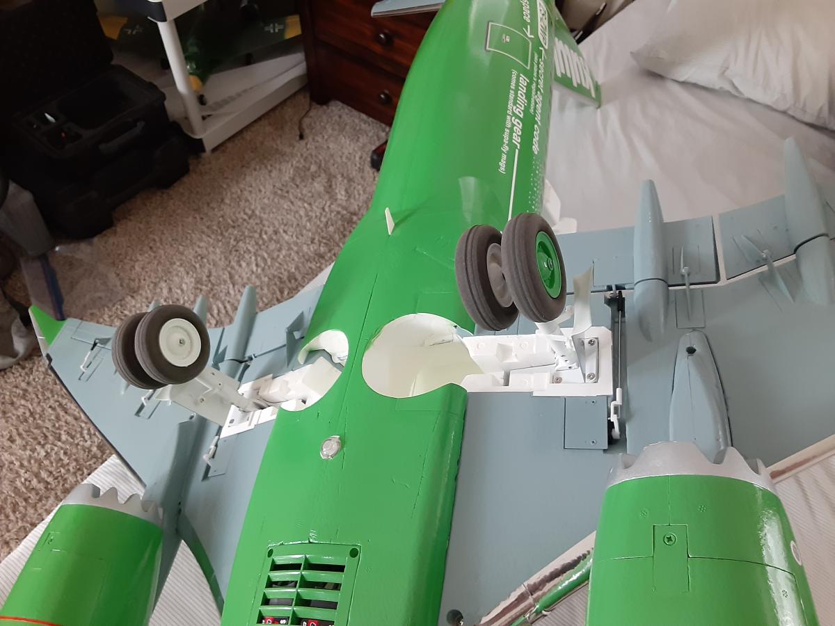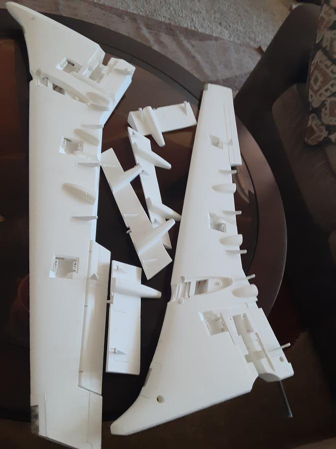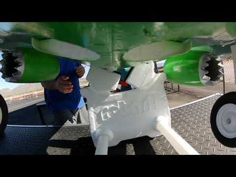 I made the mistake of stickering the aircraft when I got it. I had no intention of painting it so it did not matter at the time. I then tried to remove the decals by hand and messed it up a bit. BTW you can just use acetone to remove the decals and not the paint from the aircraft. I took apart everything to paint it so I would not have paint in all the joints and I could get better coverage on all the parts. I could not find the right paint for this so I had it made special from space age paints in Mesa Az. I had them put it into spray cans since I do not have a sprayer for this. I removed all the decals with acetone after damaging the aircraft by trying to just remove them. Sanded it down and painted it. I used a chrome detail tape on the wings because every time I put tape on it, it would pull the paint off. Leaned that with the nacelles. Decals came from Callie and were easy to put on. I messed a few up in placement but that's OK. Once it was all done I coated it with minwax water based clear coat. Landing gear were painted white and one wheel on each side green. I will roll it out next week end at an airshow at Superstition Airpark with the Arizona Modelers club on Oct Some pics and a video of the completed aircraft.