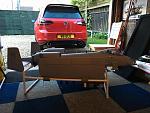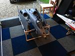 So I unscrewed the board from its ply mount plate, and moved it back so that the front holes on the board are now screwed into the rear holes in the ply mount. I was then able to move the batteries back to where the ends of them just go under the battery straps. This moves the CG back to 90mm, wheels down. I will try it at that location this weekend.Pat
