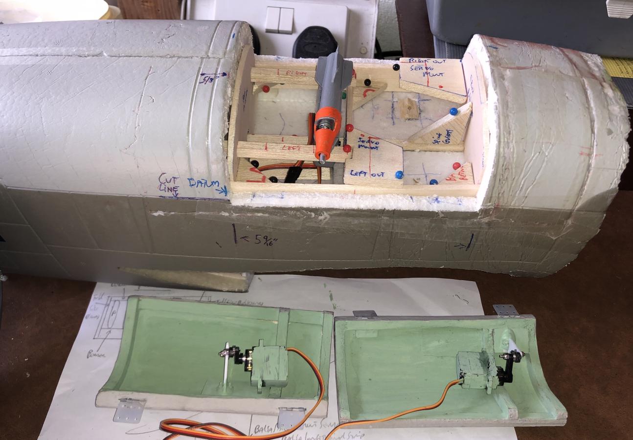 It's not a scale mod (the full size had "roller blind doors") but it's functional - you don't see the doors in detail in the air but you do see the bombs dropping! The control circuit allows single, double or all four bombs "pickled" at once and lights up "formation lights" on the tail (white for doors open and red for bombs dropping). Let me know if you want more details on building a non-scale mod for bomb doors. The bombs are modified "toy cap bombs", from EBay, and they do set off the caps when they hit a hard surface. They are not very loud though so I don't bother with the caps now. Somebody suggested I load them up with nitrogen triiodide for more realism but that stuff is pretty unstable and I don't want to risk it going off inside the bomb bay (go to 2:40 on this video https://www.youtube.com/watch?v=cWMlUDT2sK8 )