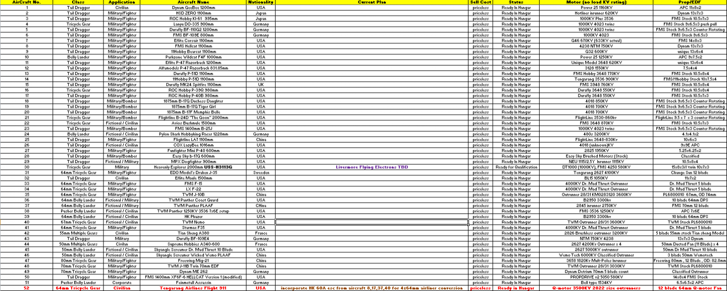 In addition to the the deployment of Aircraft#52, i have decided to deploy two flights of Aircraft#1 Stewie's GeeBee as the presiding flagship of the tengarang fleet will oversee and monitor the crew of Aircraft#52's progress. Stewies ships specification is shown in the excel chart attached to this message, and will be equipped with a single 2200mah 4s pack. Also will be Stewies first time deployment at Livermore Flying Electrons.2 Photos