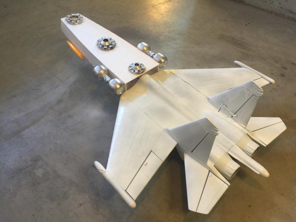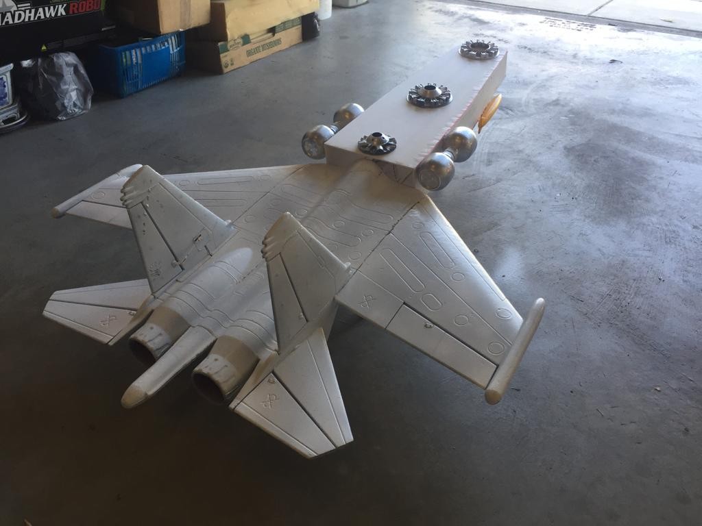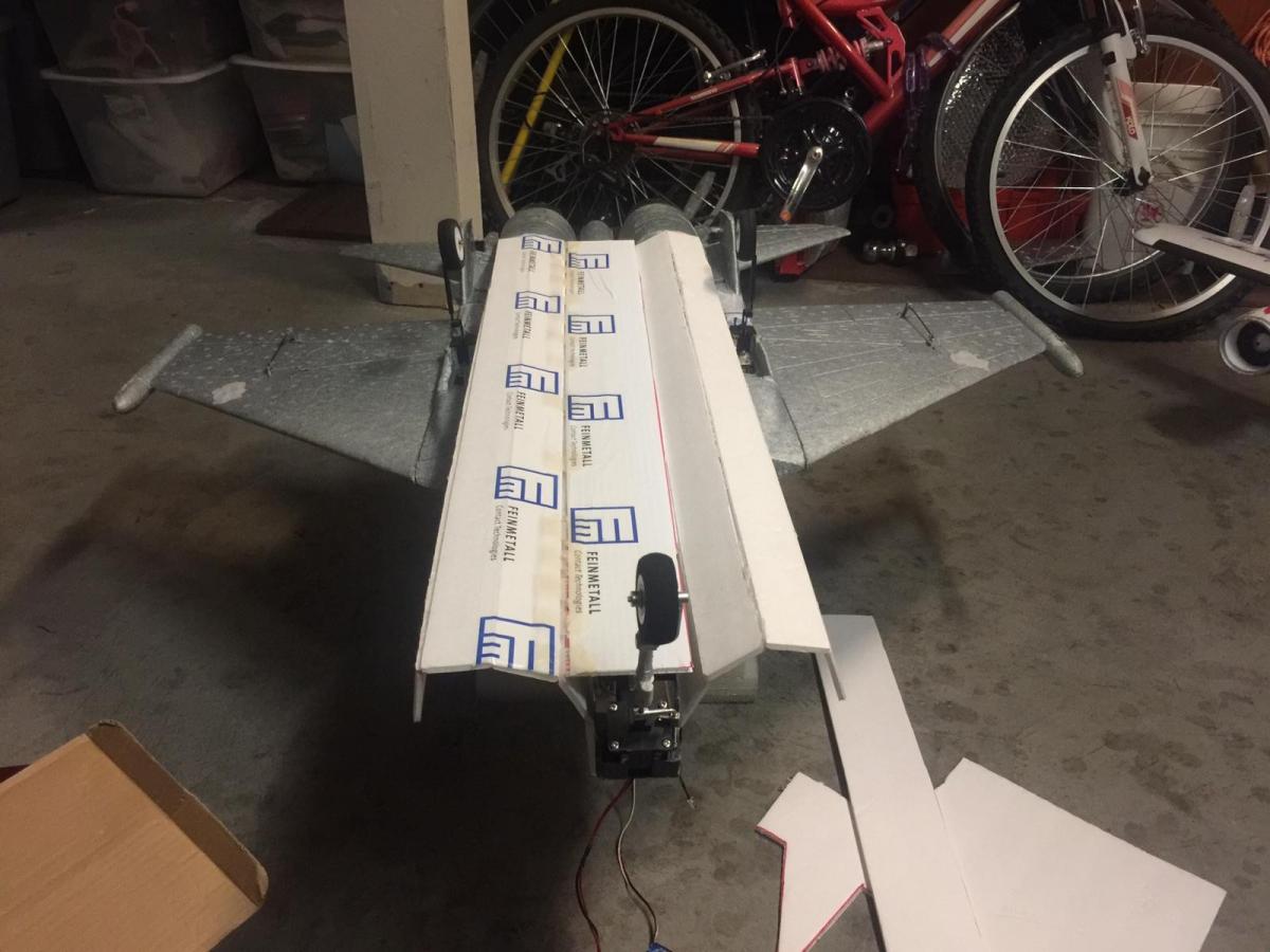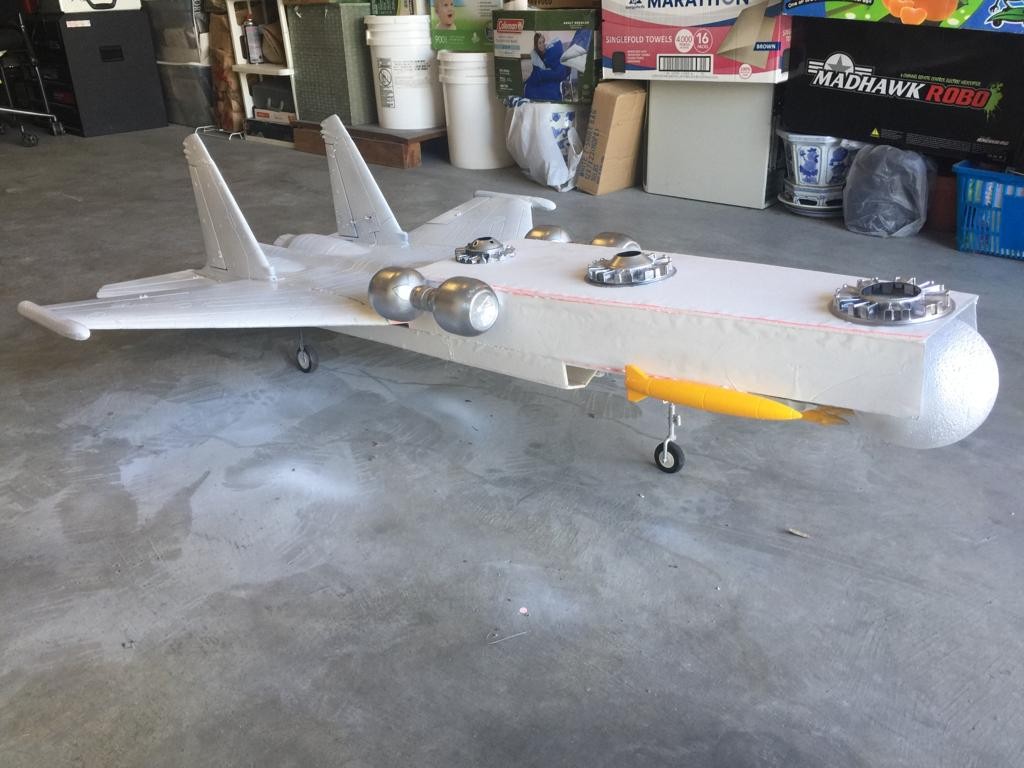She received her coat of white gloss paint this morning and the first set of cosmetics. The center of gravity is six inches from the leading edge of the wing. Esc Electronics have been calibrated with low voltage cuttoff set at 11.1V for emergency power reduction protocol, which will be well below the 4s nominal lvc for theae super simple esc’s from hobbyking.
