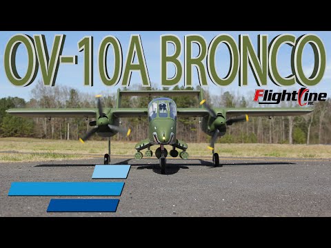 FlightLine by Motion RC delivers the historic OV-10 Bronco as an easy-to-transport, easy-to-fly, and easy-to-land RC model with pre-upgraded lights and metal suspension landing gear at a superb pricepoint. Presented in 1/8.5 scale and standing taller than other FlightLine twins like the 1/10 scale 1600mm P-38, the OV-10's twin boom and high elevator configuration displaces more volume during transport, so we designed the outer wing panels to unscrew for convenient transport standing on the model's retractable landing gear. DayBright LEDs, a large cockpit, tasteful detailing, and removable ordnance underscore a model that looks as great as it performs, while still being Beginner-Friendly and geared toward Every Day fliers.