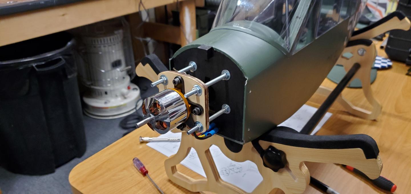 I centered the hole in the electric motor mount over the hole on the firewall and then moved the motor mount about 1.5cm diagonal, above and to the right.