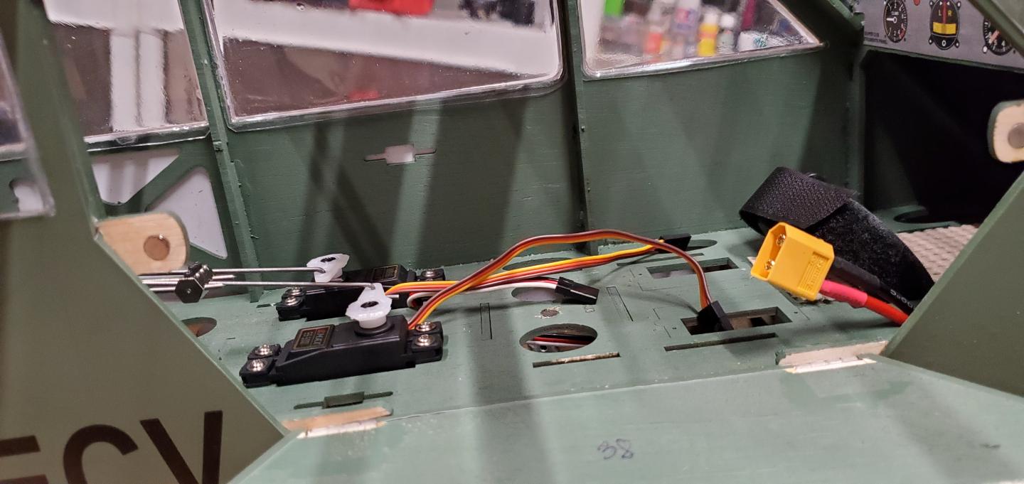 Finally, the radio gear installation begins! Everything must be installed through the door / window in the fuselage...it's like building a ship in a bottle. The opening is generous, but if you have big hands, best of luck to you.
