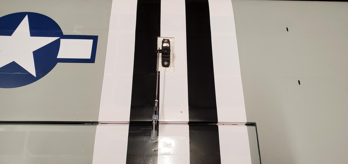 Holes are pre-drilled for the rudder and elevator servo mounting screws, and I found these matched pretty good for my chosen servos. Linkage stoppers for the servo horns are included. I use these on smaller planes with good success, but I decided to use my trusty z-bend pliers for this installation.The kit contains a metal "domino" that allows you to connect both elevator pushrods to the servo control horn. This is a nice piece of hardware that my other Nexa / VQ planes included. After the servos are installed, you can secure the rear seat using CA.