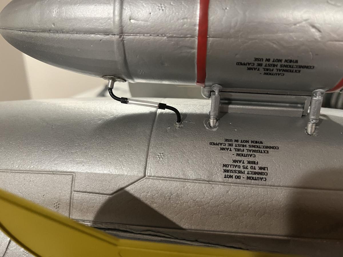 Thanks, Elbee. I first added these to a CARF 1/4.5 scale model of a P-51D that was and is part of an exhibit on the Scouting Forces in WWII. The museum is the 8th Air Force Museum in Savanah, GA. The plane was painted up as "Saucy Shirley" which was a girlfriend of a good friend of mine who passed away recently at 99 years. They used 110 gallon wing tanks to make their Scouting missions all the way to Berlin and back with the bombers. I found some pictures of these breakable glass tubes used on the Mustangs, and other fighters. I agree, it was a very clever idea on ensuring clean separation of drop tanks when needed. Due to a shortage of resources back at base, pilots were requested to bring the empty tanks home if they didn't have to jettison them on their missions.