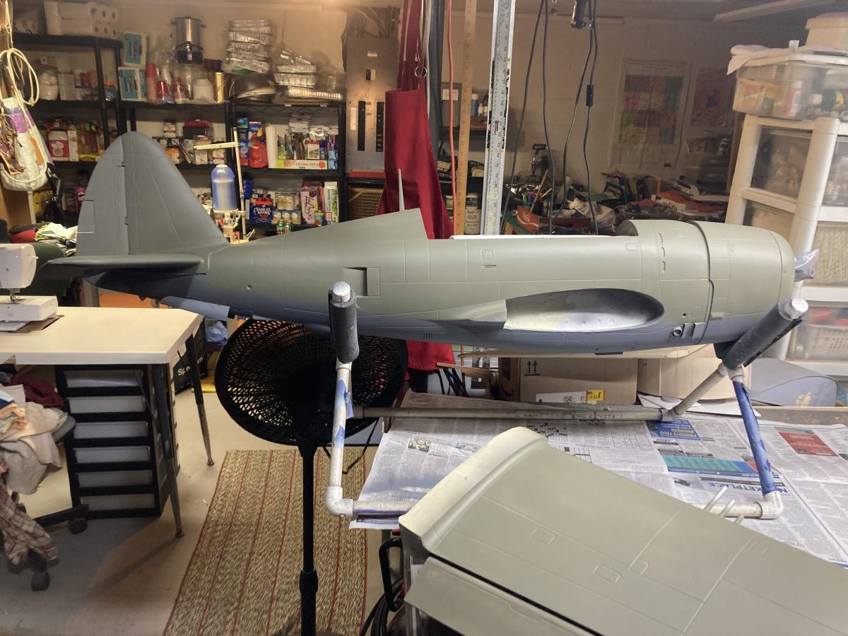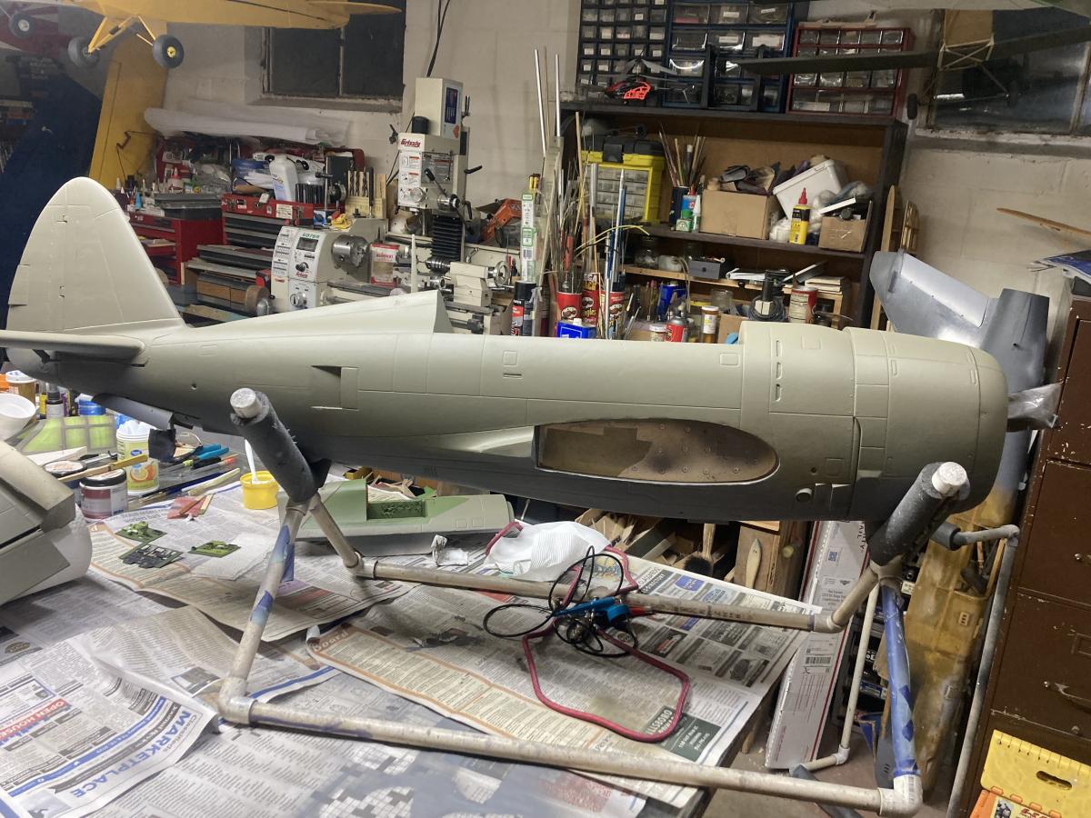 After bringing the P-47 to the bedroom last night, Nooo I did not sleep with it (couldn't convince the wife to sleep on the couch, LOL) to dry out I will spray one more coat on today. Hard to believe how different it looks vs stock.