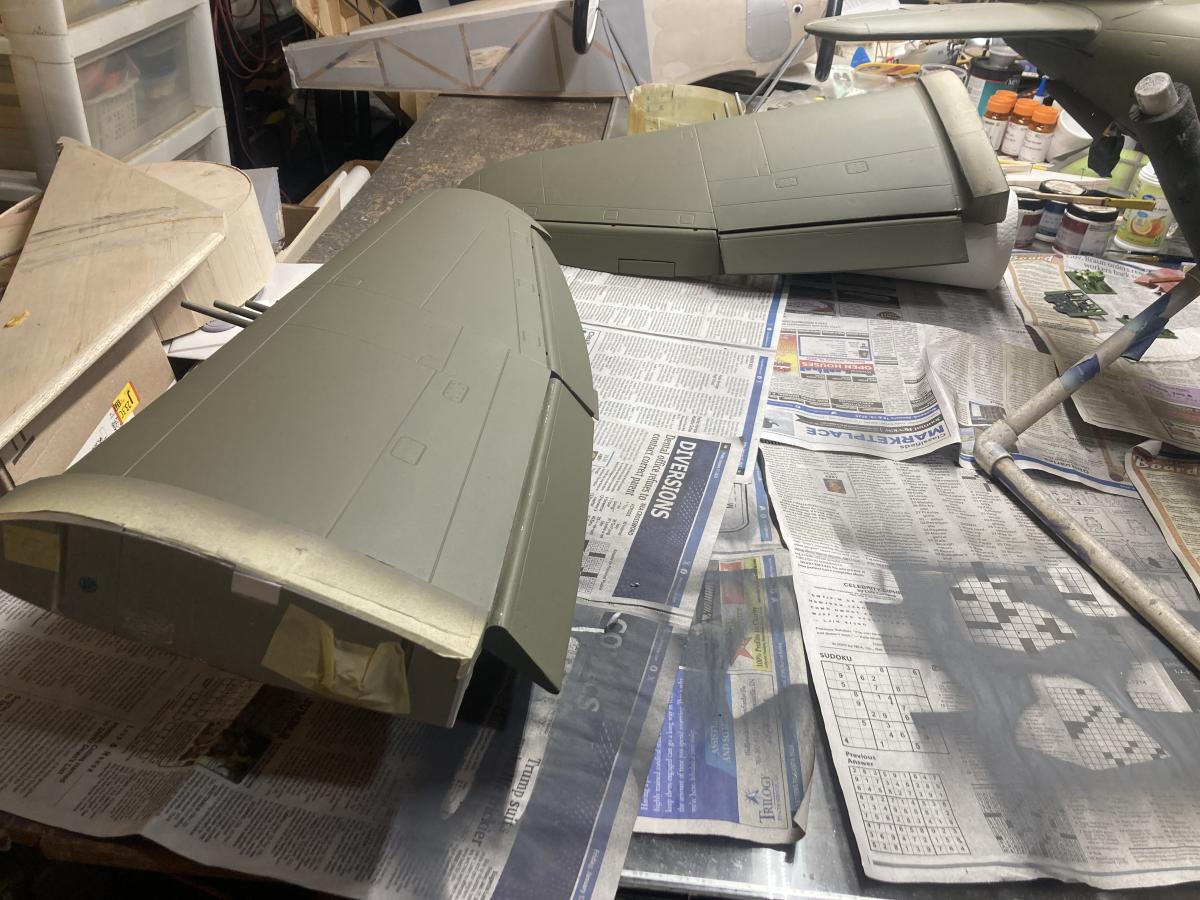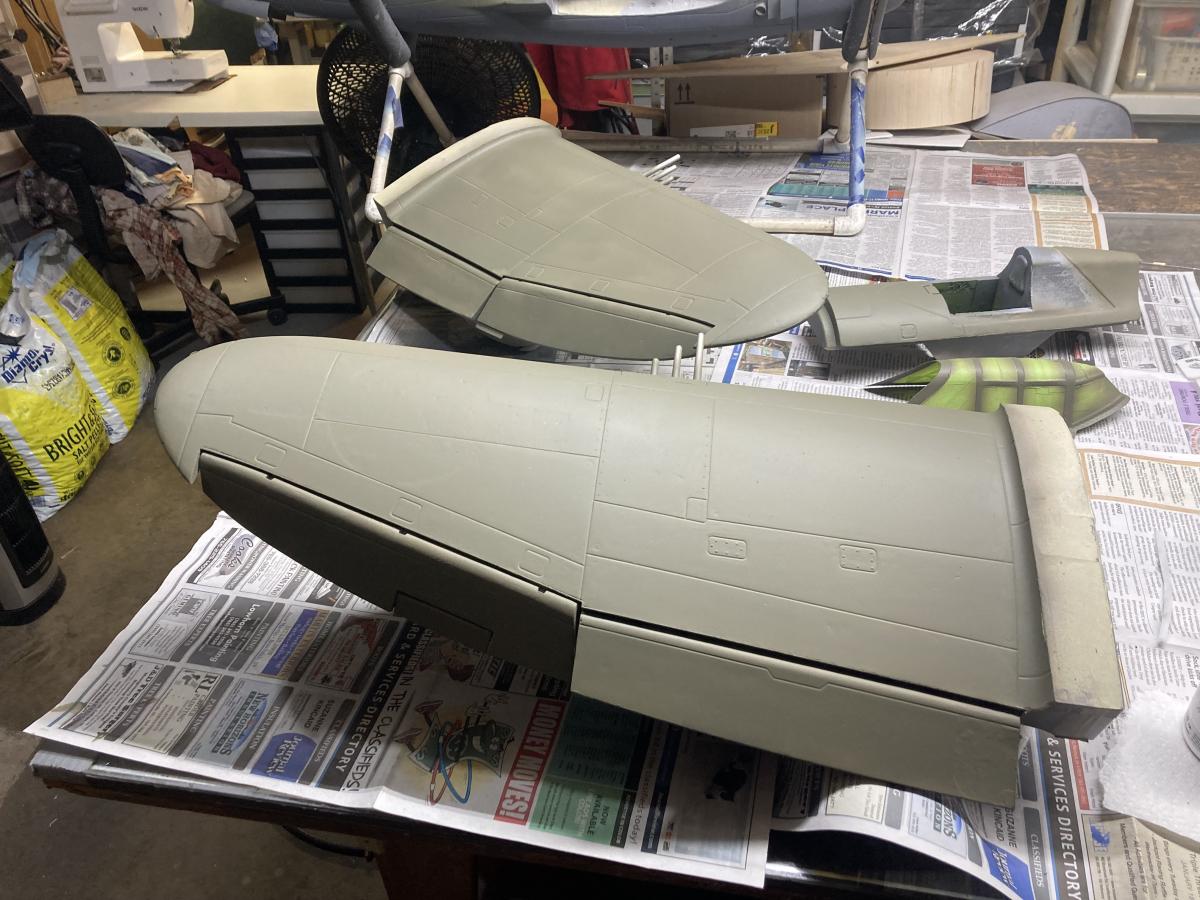 I have finally sprayed the OD and now I'll check tomorrow to see if any touchup is needed. Less than a month to get to this point, seems longer. May need to spray some grey to blend in the wavey camouflage on Lucky from my pictures. After a day or two I will spray the white stripes on nose and tail.