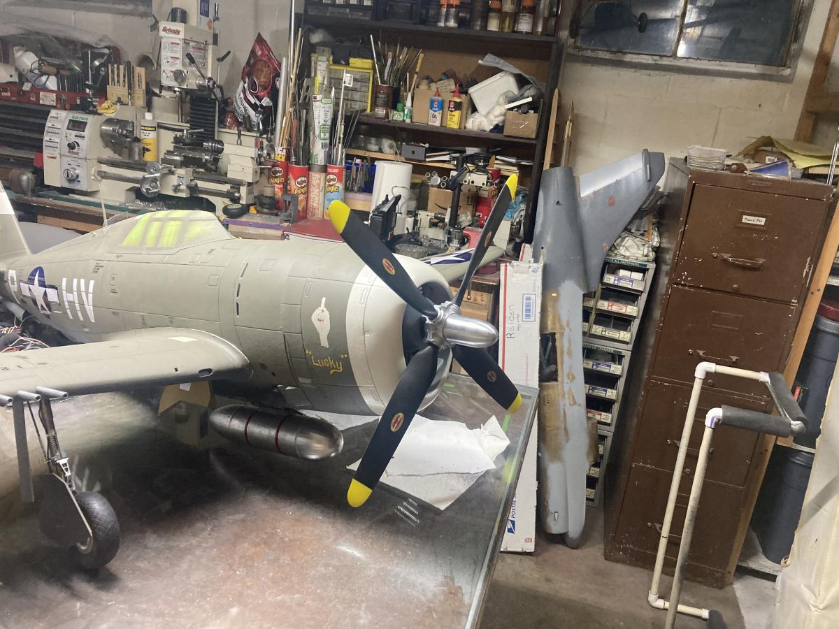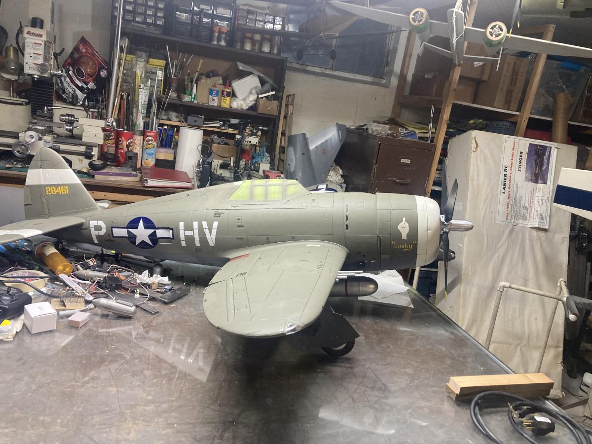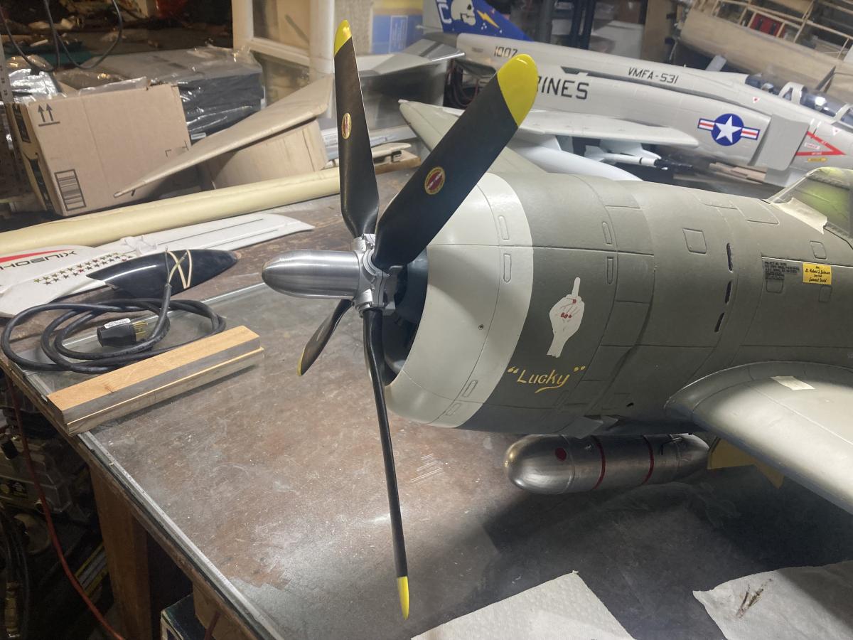 I didn't make our WW2 Day, winds were 15-20mph and not risking my planes. On a better note I did install the Alum. Spinner on the P-47 for a static display. It looks fantastic with the V2 prop. I have some ideas on how to make it lighter, just need to check with my machine shop owner friend. Stay Tuned......and Hopeful