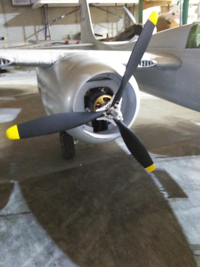 Everything came in stock so I ordered one more motor shaft, two sets of props and two spinners. A much better system of locking the props onto the prop shaft! I also reinstalled the 3948 kv760 motors. I ordered one in from Porcupine Hobbies (Hong Kong). Turns out its a Predator make and as I would prefer two of the same motors on the airplane (duh) I pulled the 760 out of my Bearcat and put it on the Tigercat. The Bearcat got the Predator motor, so she's happy! I refined my method of drilling the new holes for the motor mounts as well. Used the same centering device, carefully lined it up to what I considered the best position and drilled the two bottom holes. I then pulled the centering device (which is anything that will nicely fit in the hole of the nacelle)