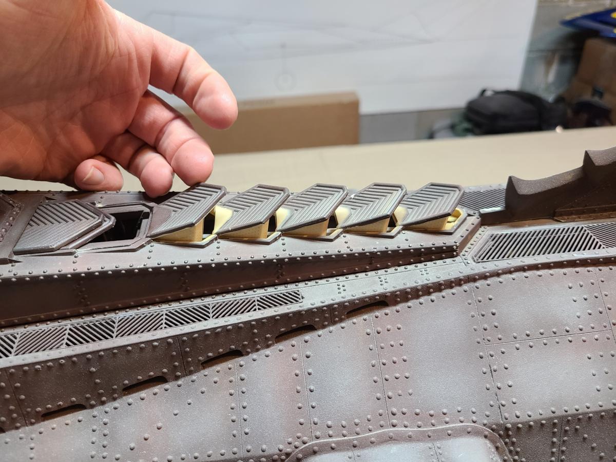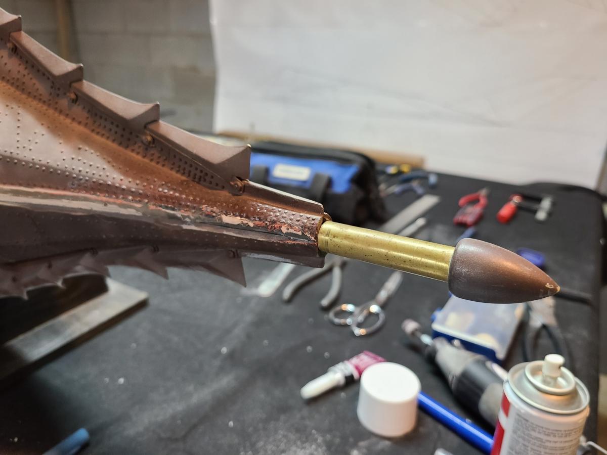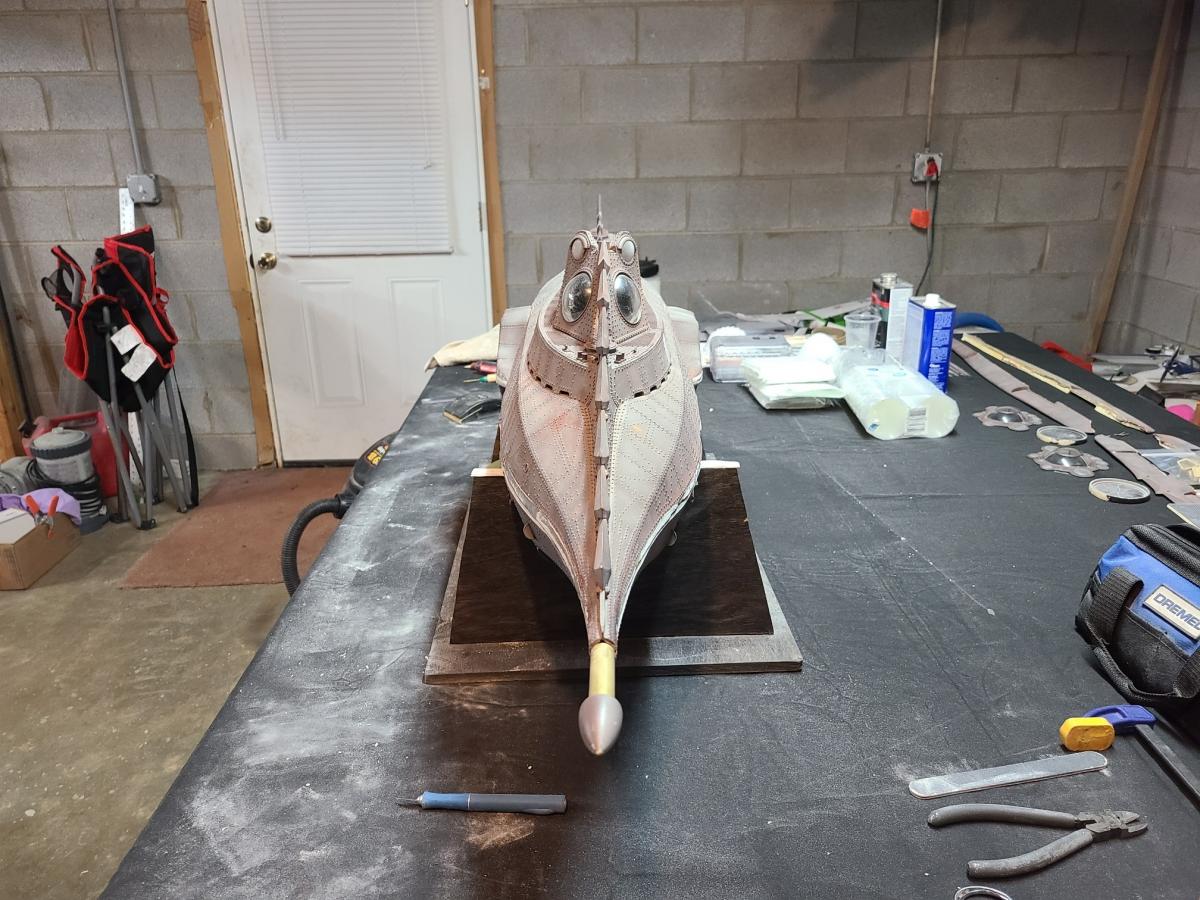 Its a big boat! This has been a dream of mine since I first saw the movie as a kid. When one recently showed up for sale on the Nautilus Drydocks I pounced! I am so stoked! It arrived with some minor shipping damage, nothing too bad. Upon initial inspection it was apparent it needed some TLC. I pulled the rakers off and the interior bulkheads out first thing. Reworked the ram based on how Bob did it on the 1/77th build, the rudder needed to be slightly shortened and the vertical fin straightened a bit. The breather vents were glued down but I have since reworked them to open and close. The biggest challenge was the fit of the top and bottom halves. There was some pretty serious warping going on. To correct it I added some brass alignment tabs to the top half and then did some serious bondo work to fill the worst of the gaps. A heat gun helped a lot too. I cleaned up the inside with a Dremel sanding drum and removed a lot of mold flashing that was on it and wherever I did some fill work I had to come back and add the rivets that got sanded off. It looks so much better now. I have the ballast tanks and one of the water tight boxes already. Most of the remaining parts have been ordered. Once I get the parts to redo the propeller pitch movement I will be able to put the rakers back on it. I plan to rework it the way Bob did the 1/77th. Going to put a brushless system in it and a modular sub system.. This thing is crazy detailed and is going to be so awesome when finished. I found out a little of this boats history. Apparently it was run over by a UPS truck and repaired by the guy responsible for making Spock's ears and the creatures in Gostbusters. He sailed it for years as his own personal boat.