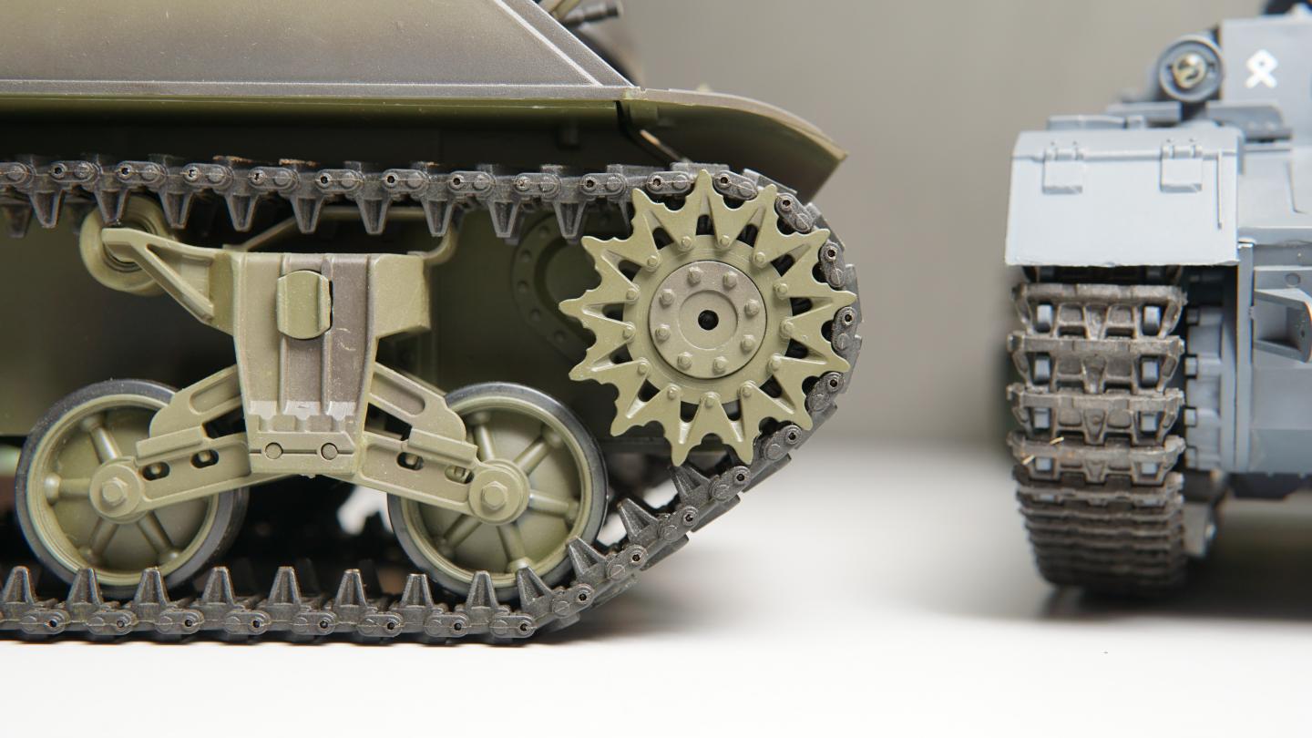 Read below to see how I arrived at this rating while evaluating the "Upgrade" version of the Sherman. "Upgrade" means that its exterior is plastic but its interior gears are steel. Note, where shown, the metal tracks denote a "Professional" version which includes more external metal parts at higher cost.