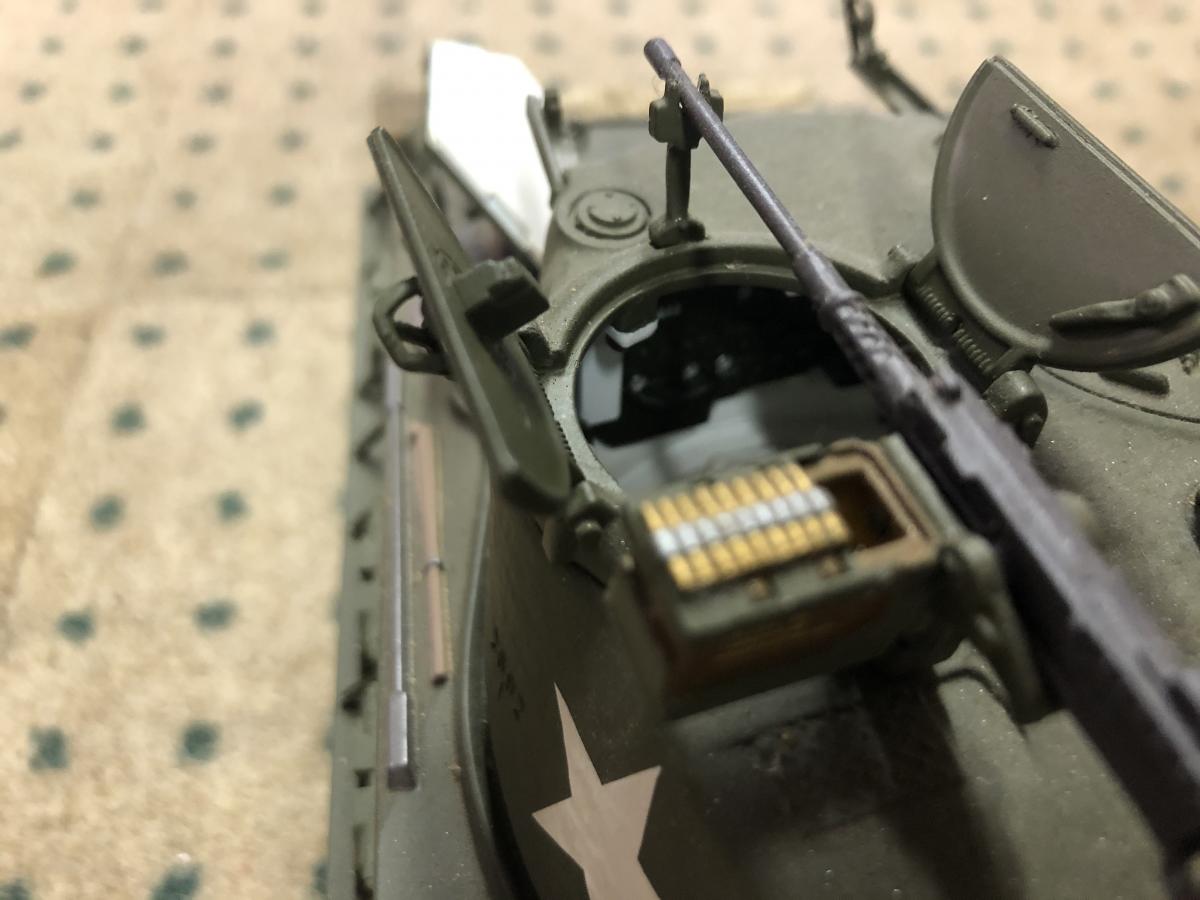 Recognizing the wide variety of Sherman loadouts and configurations that a modeler may want to depict, it makes sense to me why Heng Long did not want to drill so many holes in areas where some users may not want a hole. This is good for versatility, but not so good for longevity, because some of the parts may fall off when the double stick tape dries out. I would recommend deciding upon a final position for your stowage gear, and either use the double-stick tape, or glue the parts into place. It wouldn't be too difficult to glue magnets along the inner wall of the hull, and to the larger stowage boxes and bags, to make them magnetically attachable.