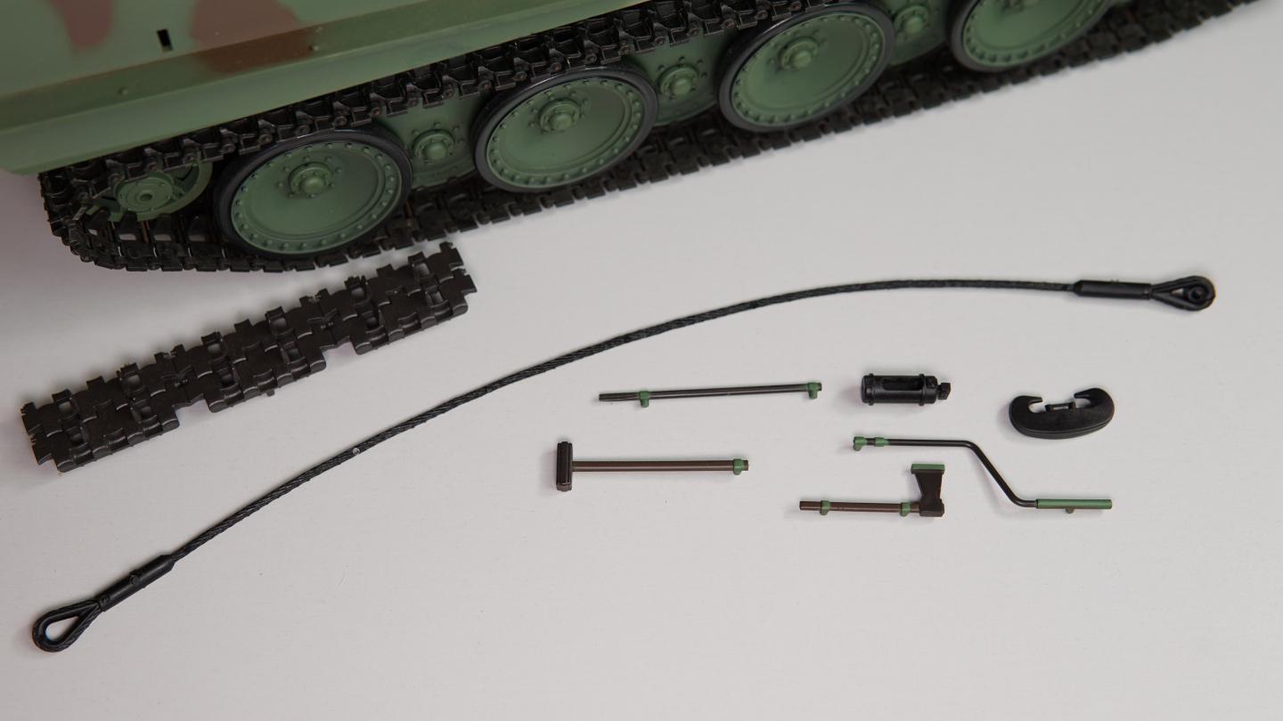 Because the tank itself is functionally complete and it doesn't require the cosmetic accessory parts to run, I recommend testing your tank's basic functions immediately after unboxing the tank, before you install the cosmetic accessory parts. If there happens to be any problems, it is better to report them to Motion RC for warranty support before the tank has any cosmetic parts attached to it.