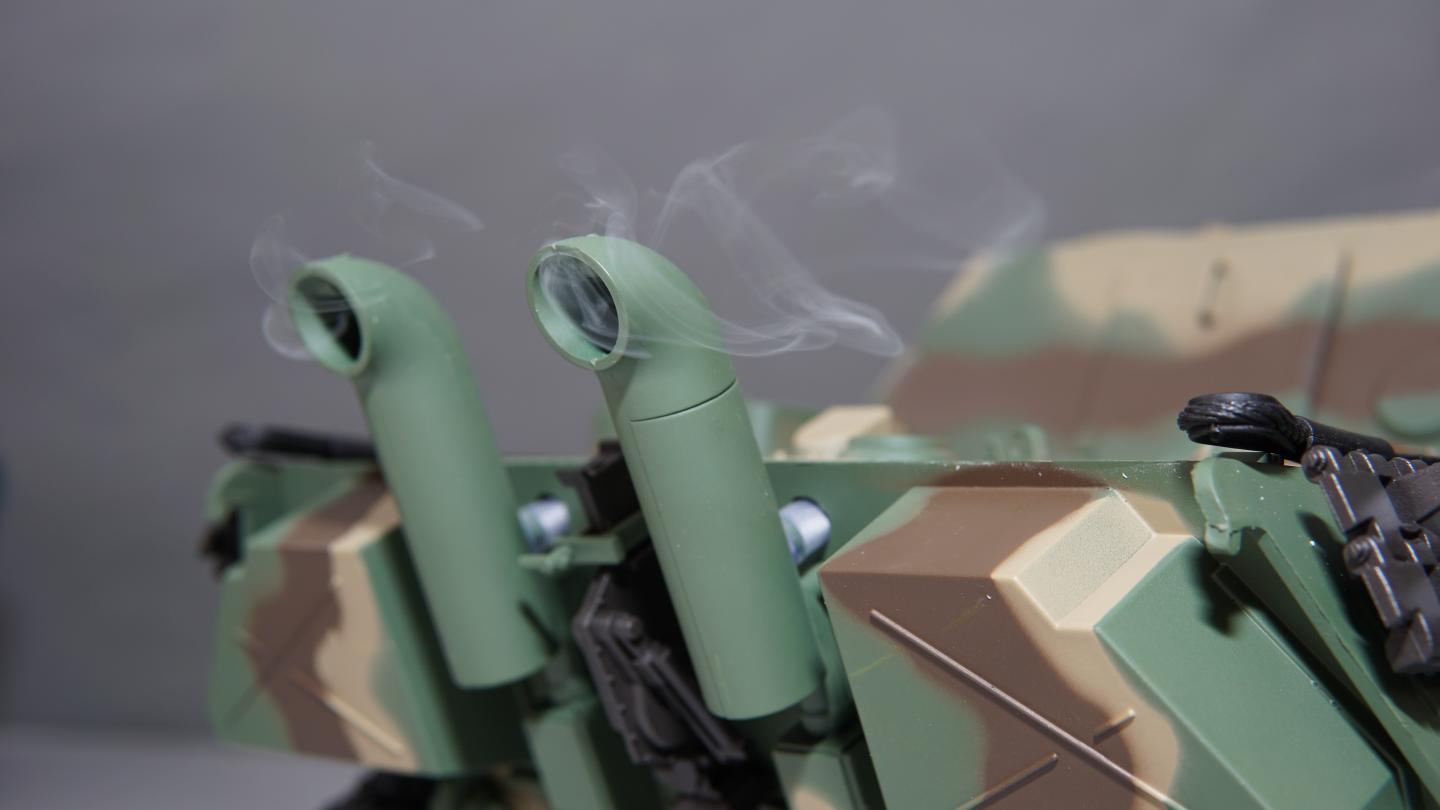 8) Fires an invisible IR signal to be used as part of Heng Long's Infrared Battle System to disable other tanks during simulated combat between up to 20 tanks at the same time