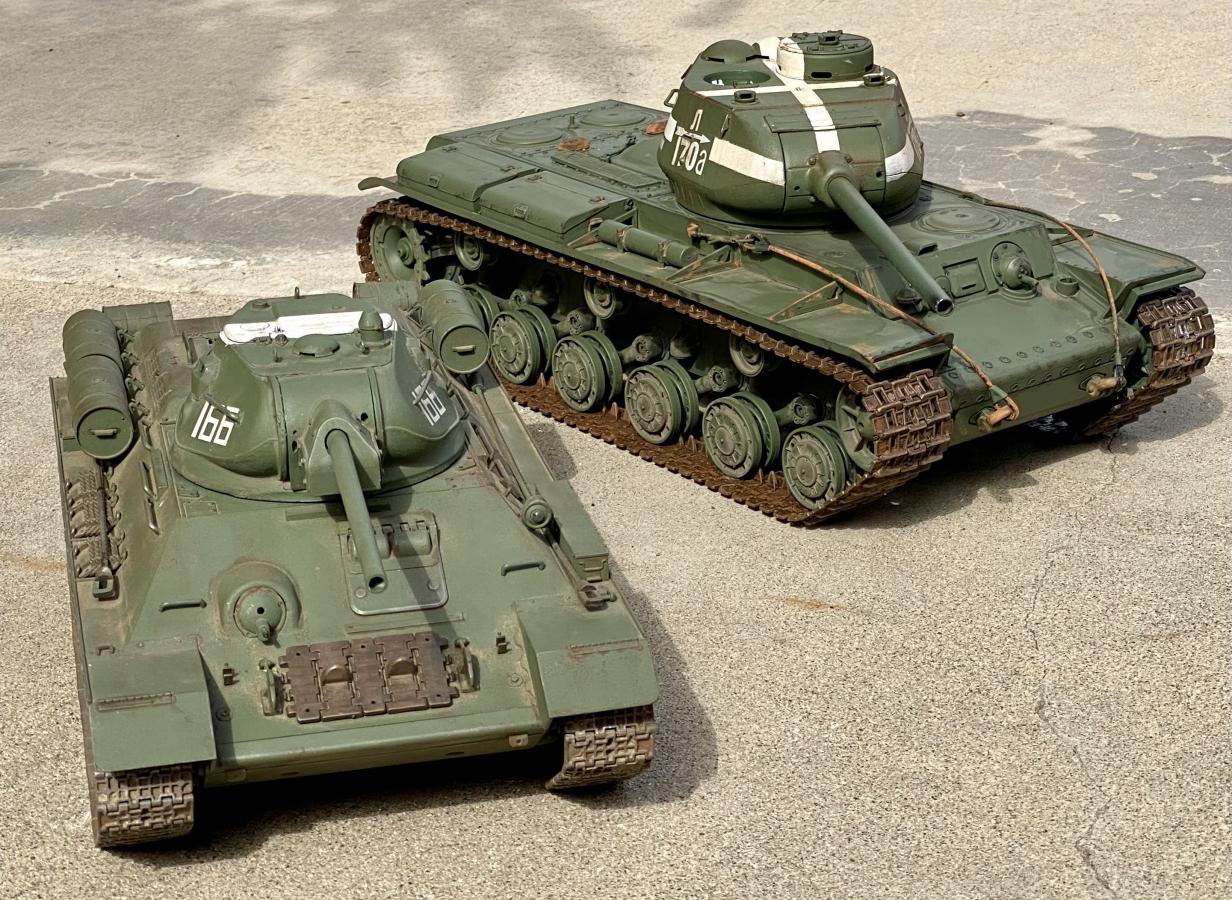 Since were doing "cousins", here's a couple. Actually the result of a turret transplant! The KV's not done yet, but far along enough for a photo.
