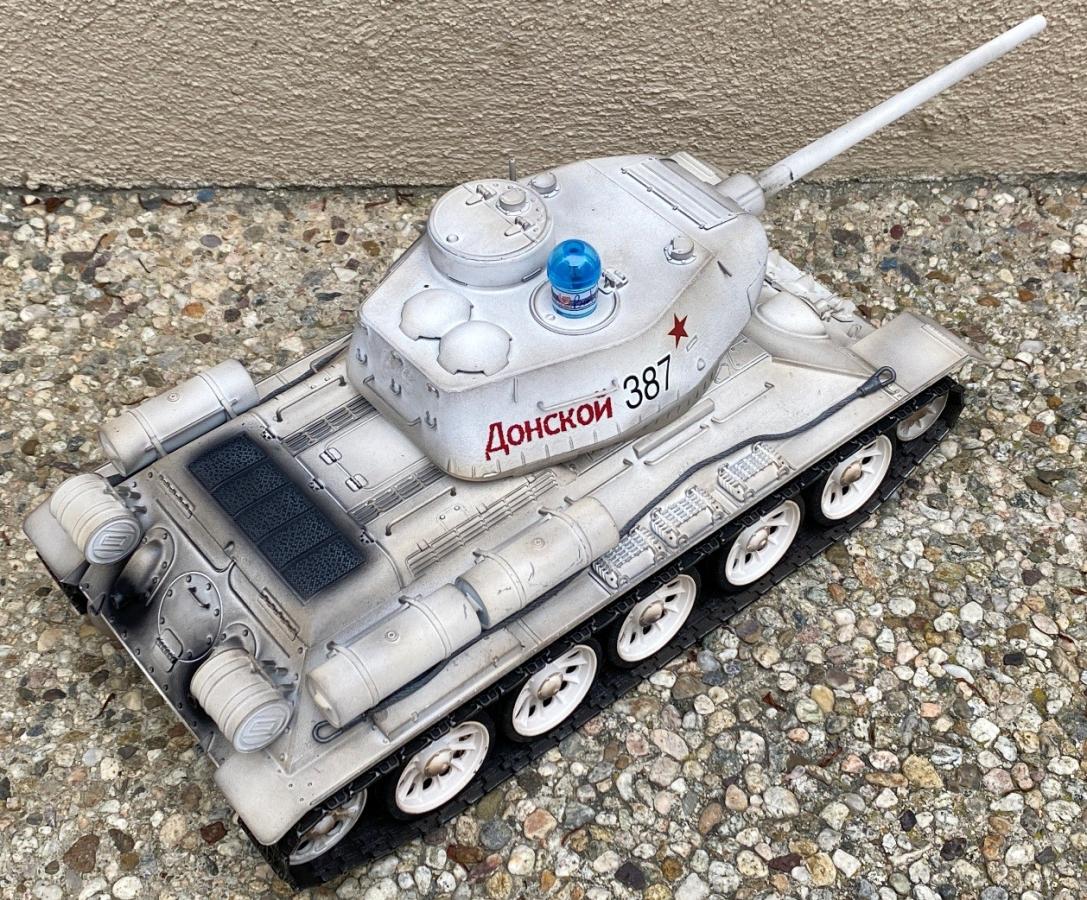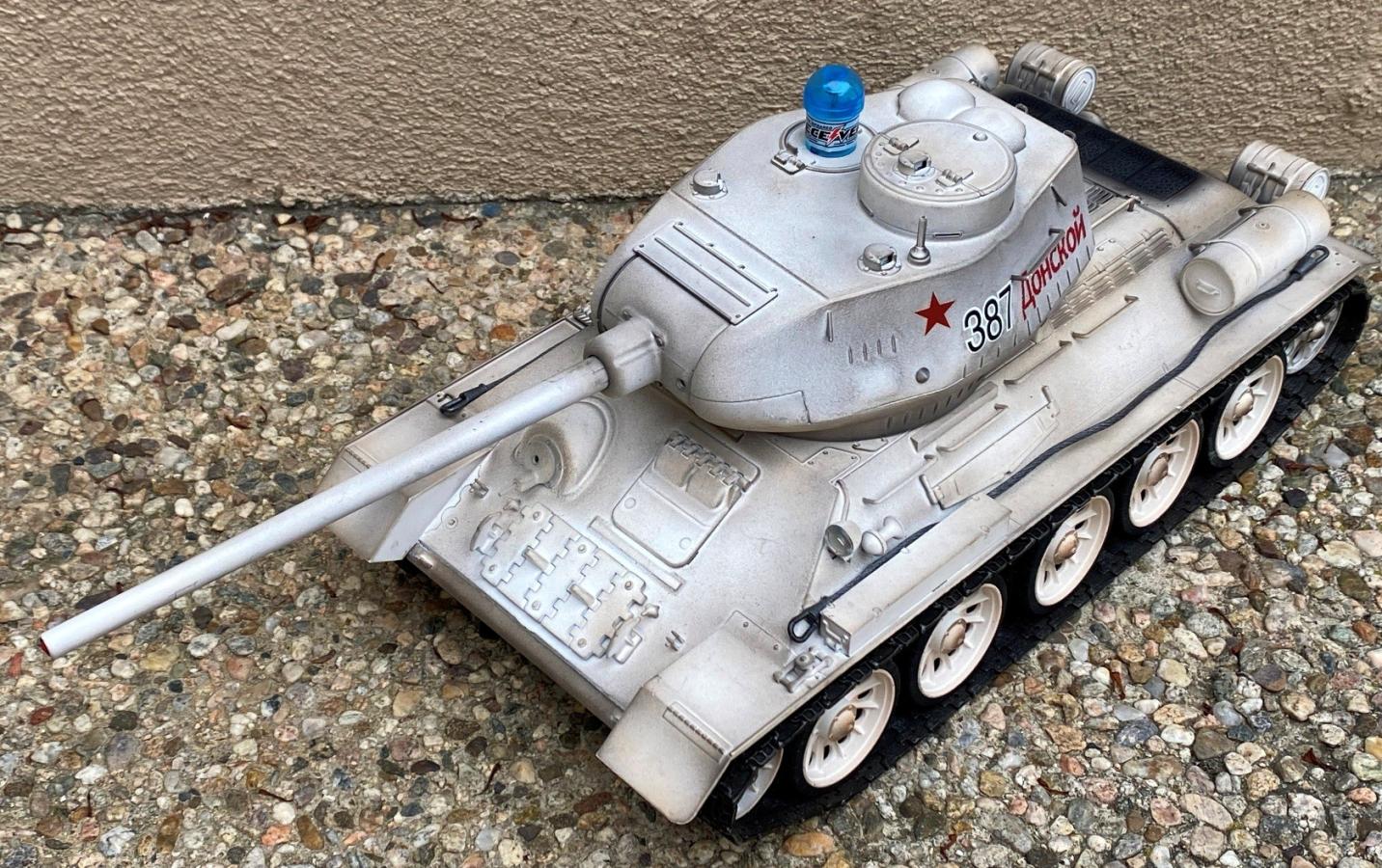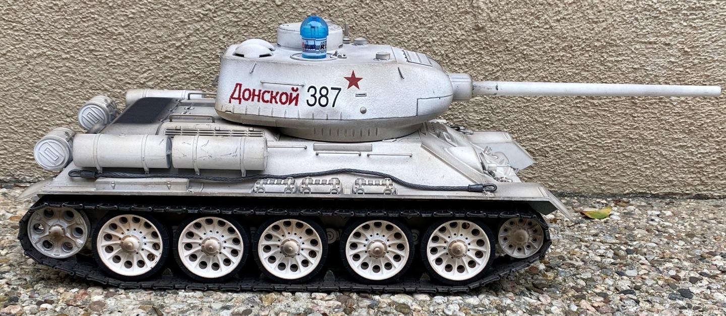 • My Torro T34/85 as of now. It can only battle with our other tanks in the shade or indoor due to its IR receiver. A member in our SoCal RC tank club has found a way to install the LegoDEI receiver onto this board. The future is a bit brighter for this tank to join the outdoor event.