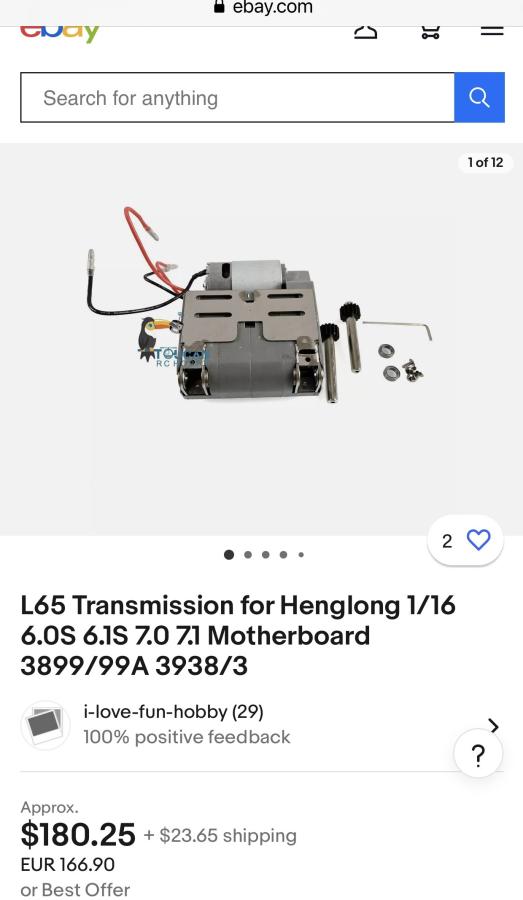 That makes sense. The Soviet Union KV-1 is an under powered heavy tank with a 22mph top speed.Originally posted by tank_me View PostThe Heng Long metal enclosed gearboxes come in a 1/56 ratio. I have them installed in my KV-1 and SU-152. https://www.aliexpress.us/item/32568...Cquery_from%3A
