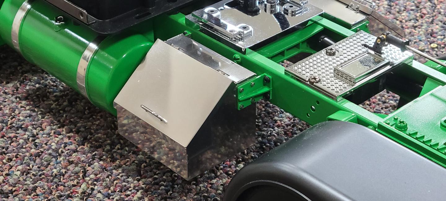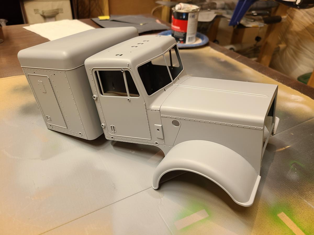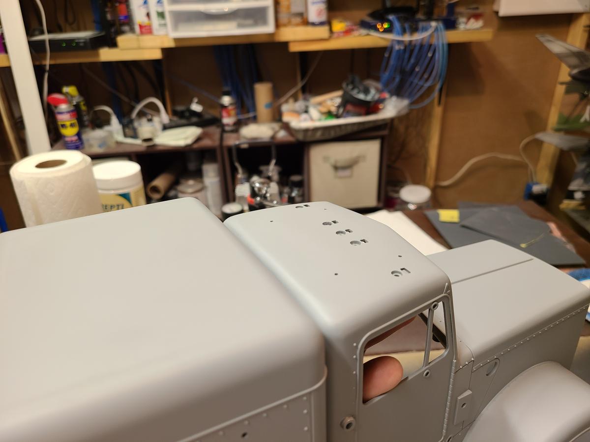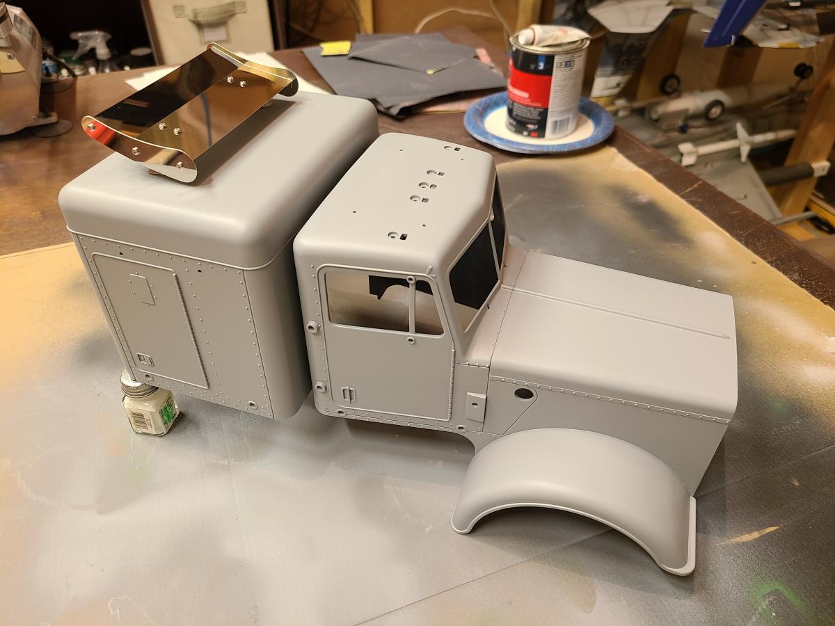 Getting the body work closer to a Peterbilt. Found a cool roof top spoiler in polished stainless steel I intend to add.