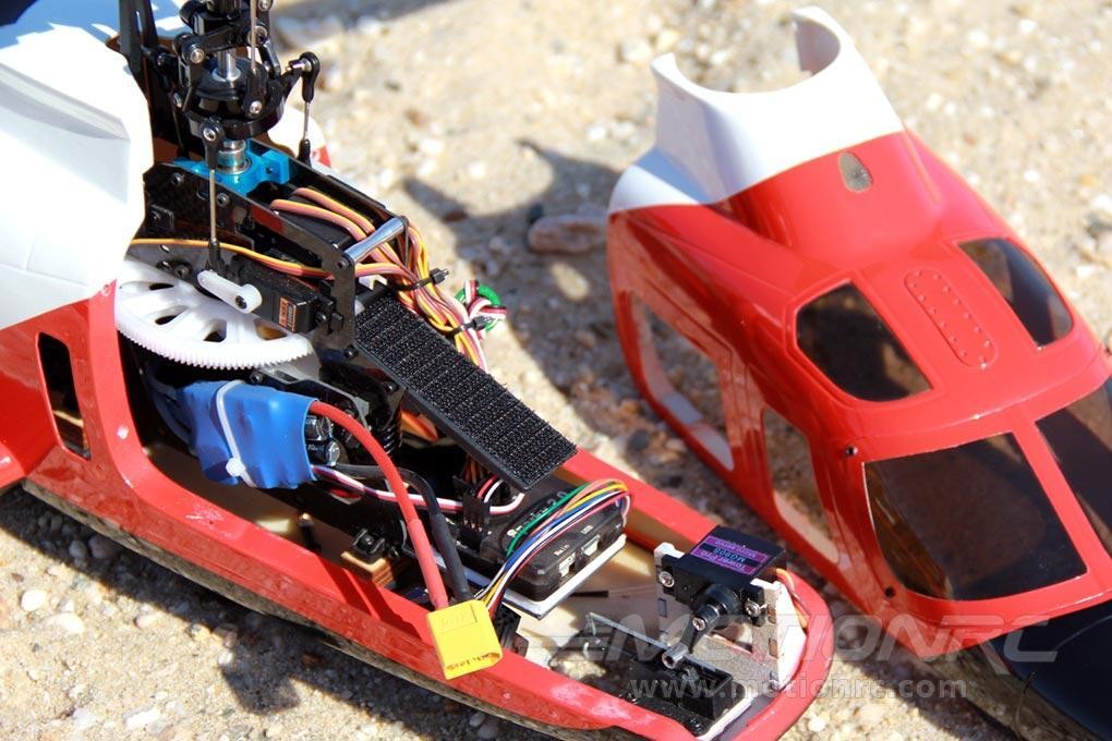Using a 6S 1100-1500mAh battery, fly for 5-6 minutes while exploring the flight envelope of this sport scale stabilized helicopter. The durable fiberglass bodies are finished in automotive paint and clearcoat for durability, and feature sharp panel lines, rivets, and other surface details.